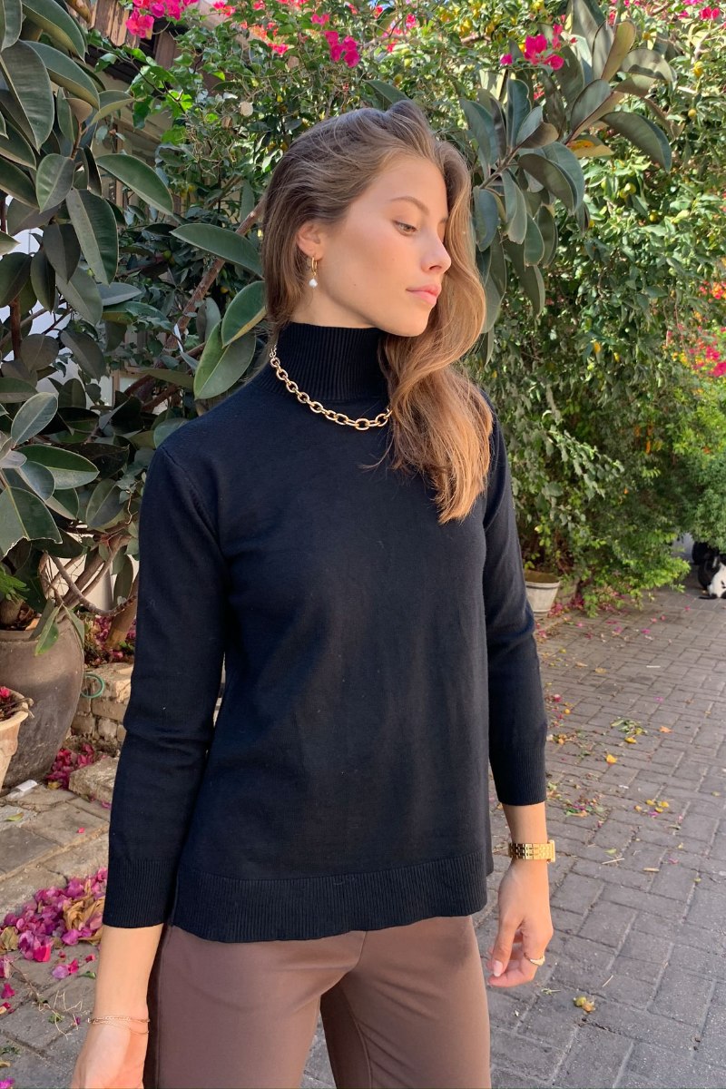 צווארון גולף ושרוולים ארוכים בגימור ריב