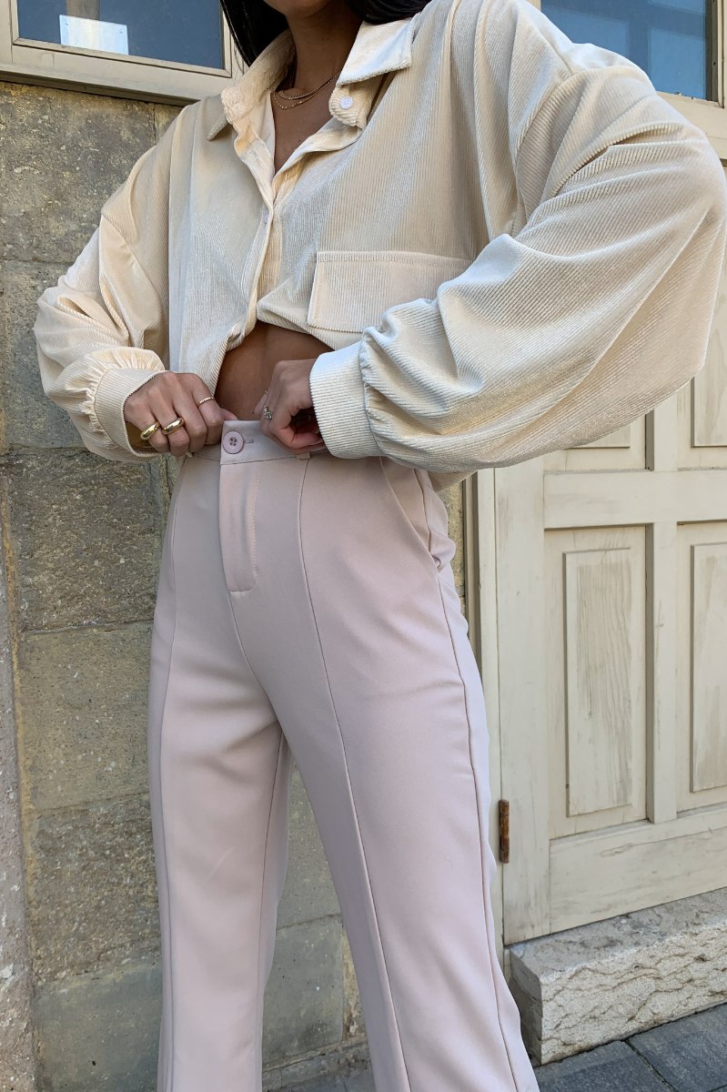 עם כיסים צידיים, סגרית רוכסן וכפתור תואם
